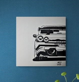 Nissan GTR R34 painted with acrylic on a primed 40 x 40 cm canvas