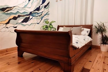 Since the beginning of this week, I've been looking forward to today. My mind, while I was in the guest room, complained all the time that it was unable to accept this interior. My heart hurt as well as it went in there. Since this is the only room that has a landord's bed, and it is huge, I have concluded that the wall must fit in with it. It has to be something that will increase the value of this piece of furniture and give character to this room.