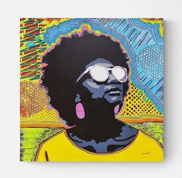 This 60 x 60 cm canvas, meticulously crafted with acrylic and sealed with varnish, now embodies the essence of my newfound affection for the dynamic and expressive world of Pop Art. The monochromatic intention took an unexpected turn, but isn't that the beauty of art? It evolves, it surprises, and it captures the artist's journey in every stroke.