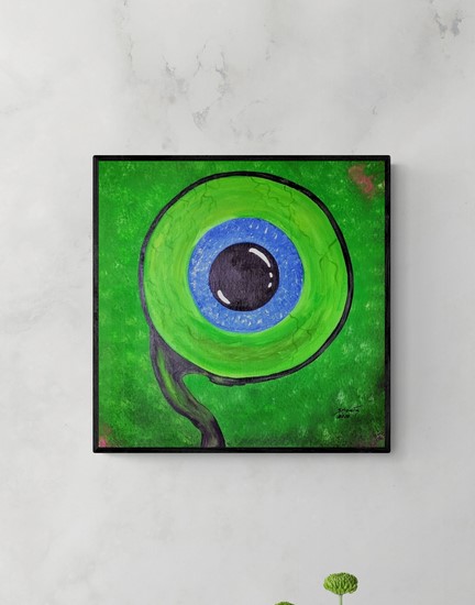 "Eye." Primed canvas, painted with acrylics, patiently waiting for the finishing touch – varnish. Dimensions: 40 x 40cm.