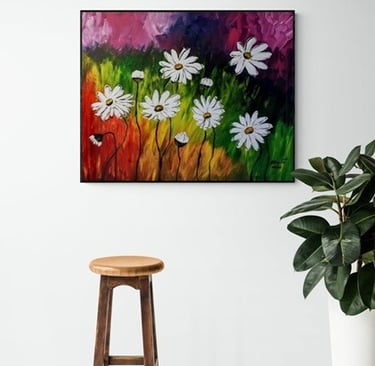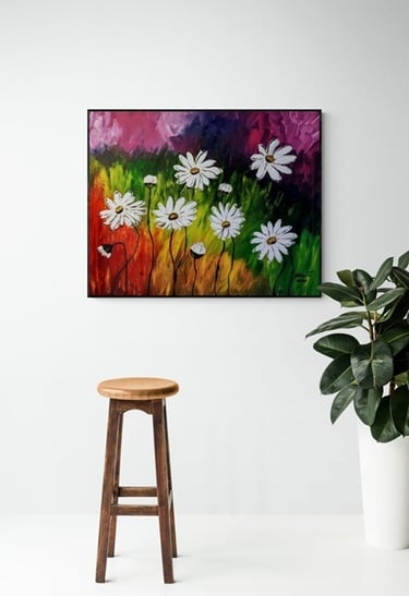 You know the feeling when something goes wrong, but you still feel that what you do will be brilliant ???. That's what happened with this painting. The first version of this canvas was the cosmos, it even looked quite good, but, there was an but and (# $% ^ & ! @ # $% ^ & ), I overdid it, nicely I ruined the whole thing I slept and in the morning, I already knew what will arise. Flowers , I didn't know what kind yet, but it was supposed to be lush in color, something different than my previous scribbles.