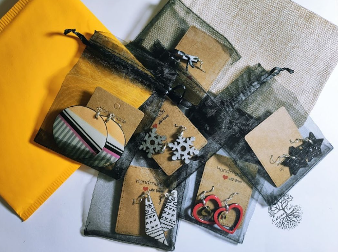 I'm excited to share the latest creations hot off the crafting table – a pair of exquisite earrings, meticulously designed and crafted for an upcoming order. All that remains is to carefully pack and address them. Tomorrow, as I stroll with my furry companions, these earrings will embark on a journey to their new home.