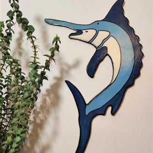 I'm thrilled to share with you my latest creation, a handcrafted "swordfish" bas-relief that I hope will soon find its way into someone's heart and home. This piece captures the graceful dance of a swordfish, a testament to the beauty and wonders of marine life.