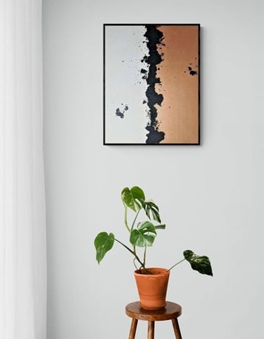 Canvas painted metallic bronze acrylic and black acrylic. The whole is closed with a 0.5 cm painted frame. 40 x 50 cm