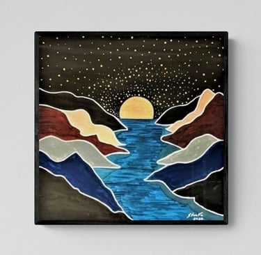 This piece, like its predecessor, is born on primed canvas, a canvas that embraces acrylic strokes, metallic acrylic whispers, and a finishing coat of varnish. Enclosed within a 0.5 cm painted frame, the image tells its tale with dimensions of 40 x 40 cm.