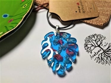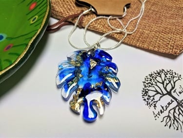 So that it would not be boring, this time I made pendants. Monstera leaves in a slightly different edition. The pendants are made of epoxy resin, colored with special inks, with the addition of 24 carat gold in flakes. The whole thing is suspended on a silver pendant with a sample of 925. The pendant can be hung on a silver chain with a sample of 925, or on a black strap.