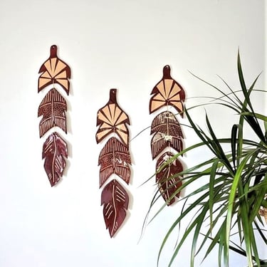 These feathers, crafted from clay, have been meticulously painted with acrylics and then lovingly coated with epoxy resin. Each feather possesses its own charm, with slight variations in both length and width. The approximate dimensions are 45 cm +/- 2 cm in length and around 10 cm in width. Let these Feathered Fantasia creations add a touch of whimsy and color to your surroundings! 🌈🎨