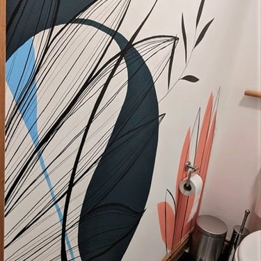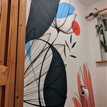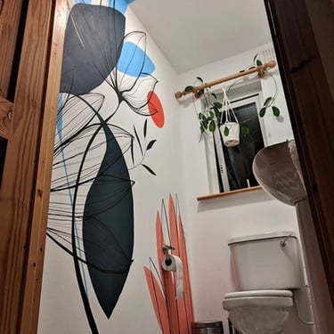I decided to take a risk and try to make a painting on the wall this time professionally. However, looking at my house, I don't have too many empty walls . I thought and found The toilet on the ground floor of my house, the fact that there were my carvings, but I can put these works somewhere else, and maybe they will sell soon: )