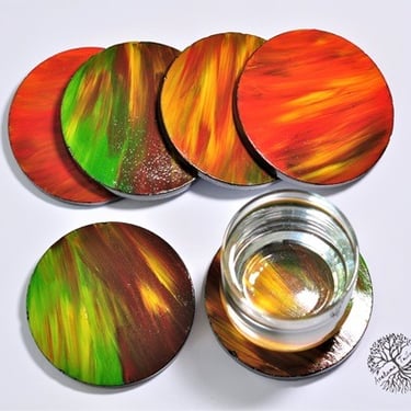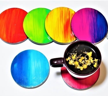 These coasters are more than mere functional accessories; they are small, intricate canvases that echo the language of color and texture. The interplay of acrylic hues adds a lively touch, transforming each coaster into a mini masterpiece. From serene blues to warm reds, every stroke is a burst of artistic expression.