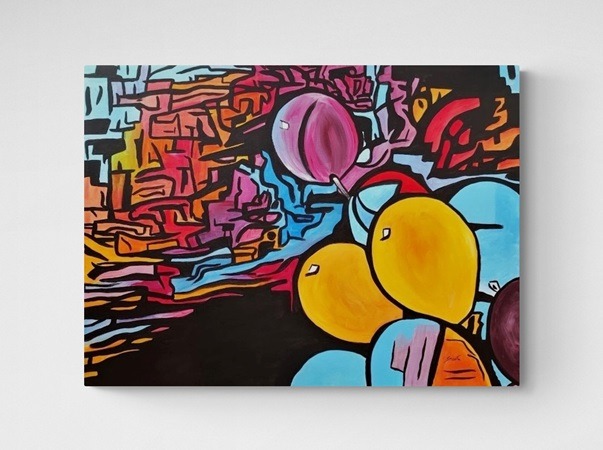 The marriage of abstraction and intense colors, as seen in "Hidden Innocence," is a visual representation of my childhood dreams. I envisioned walls adorned with large, colorful abstractions, and now, I find myself bringing those dreams to life on canvas.