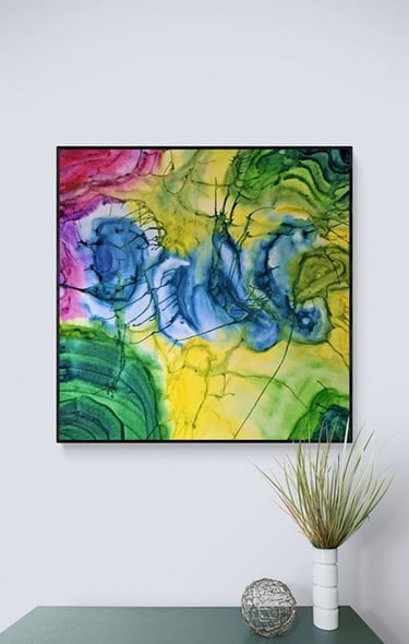 When I closed my eyes, a wave of colors appeared, they danced among themselves and joined them delicately with threads, the view was amazing, joyful and unique. I haven't been able to recreate it, but something has been created like this. When I was painting it, my smile did not leave my face, it felt as if I was painting what is deep inside me.