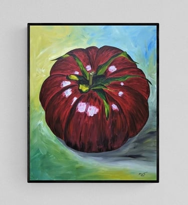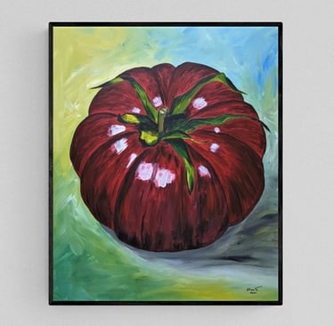 Presenting: "Metamorphosis of the Tomato" Primed canvas, painted with acrylicโa visual exploration of the tomato's evolution.