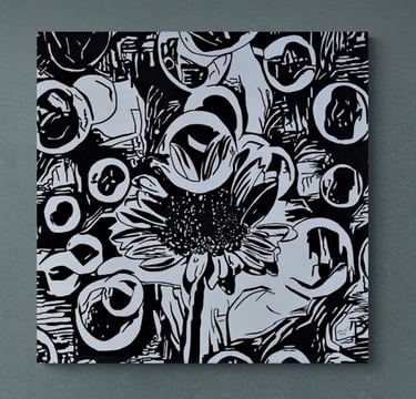 As you gaze upon this 70 x 70 cm canvas, I hope it sparks your imagination, conjuring associations and stories that resonate uniquely with you. The varnish applied adds a layer of depth, allowing the monochromatic beauty to captivate and intrigue.