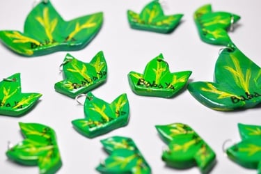 To express appreciation for her dedication to harnessing the power of nature, these custom clay pendants have been crafted with utmost care. Each pendant is delicately shaped from clay, adorned with vibrant acrylic hues, and meticulously sealed with both waterproof varnish and a specialized kaolin varnish.