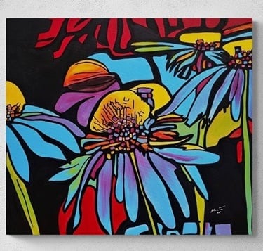 Introducing "Echinacea," a piece that symbolizes the revitalizing journey back to wellness. Crafted on primed canvas and painted with acrylic, this 80 x 70 cm artwork stands as a visual representation of the commitment to self-happiness.
