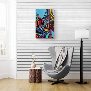 Primed canvas, painted with acrylic + varnish. 50 x 80 cm