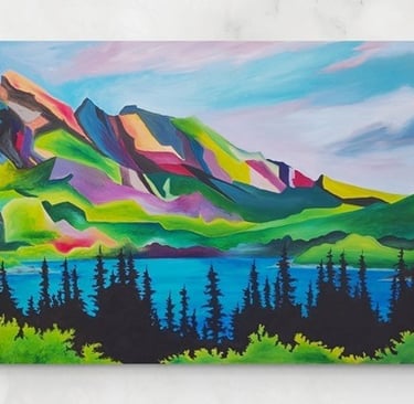Once upon a time, in a small town, there lived an extremely talented artist named Mia. She had a gift for creating abstract works of art that always aroused delight and amazement. One day, Mia decided to create a painting that would express her love for mountains and nature, but in a completely innovative way.