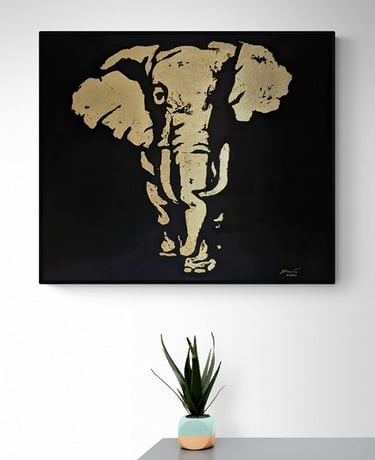 In homage to these magnificent beings, I present a canvas where the elephant reigns supreme. Using acrylic strokes and golden design paper, I've sought to capture the essence of their regality. This artwork is a celebration of the elephant's enduring legacy.