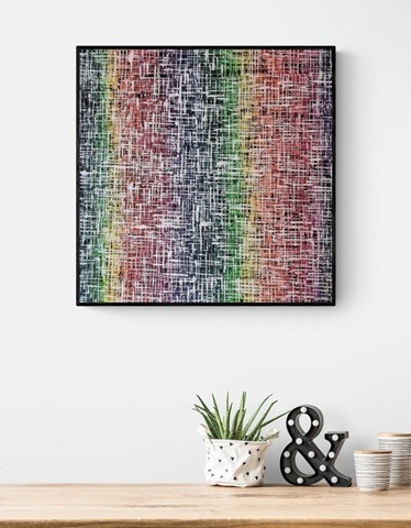 Primed canvas, painted with acrylic, 60 x 60 cm. The picture is closed with a 0.5 cm painted frame