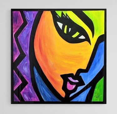 "Whimsical Gaze" Primed canvas, passionately painted with acrylic, adorned with a playful gaze, measuring 40 x 40 cm.