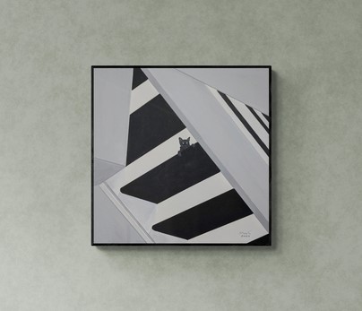 "Cat" - a creation unfolding on a primed canvas, brought to life with vibrant acrylic strokes. Tonight, it will be adorned with the final touch – a coat of varnish. The canvas measures 40 x 40 cm, capturing the essence of a feline whimsy.