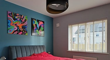 I'm eager to share the fruits of this creative venture with you in the near future. In the meantime, here's a fresh photo of my paintings, sent straight from the heart of my client's bedroom. It warms my artistic soul to see my creations find a cozy place in someone's home! 🖼️✨