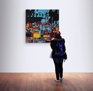 Painted on a primed canvas, the acrylic strokes weave a tale of craftsmanship and tradition, paying homage to the artistry that goes into creating such a revered beverage. The dimensions of 90 x 90 cm allow for a visual immersion into the world of Tullamore, with each varnished detail enhancing the depth and allure of the piece.