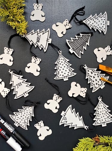 I'm excited to present another set of enchanting Christmas decorations, crafted with love and artistry. These delightful pieces, made from laser-cut walnut wood, capture the essence of the holiday season in a woodland-inspired design.